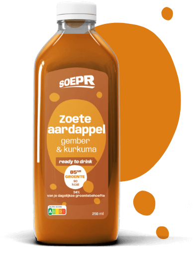 Proef de perfecte balans van zoete aardappel, de pittige kick van gember en kruidig kurkuma in onze drinksoep. Een smaakvolle traktatie voor je smaakpapillen!